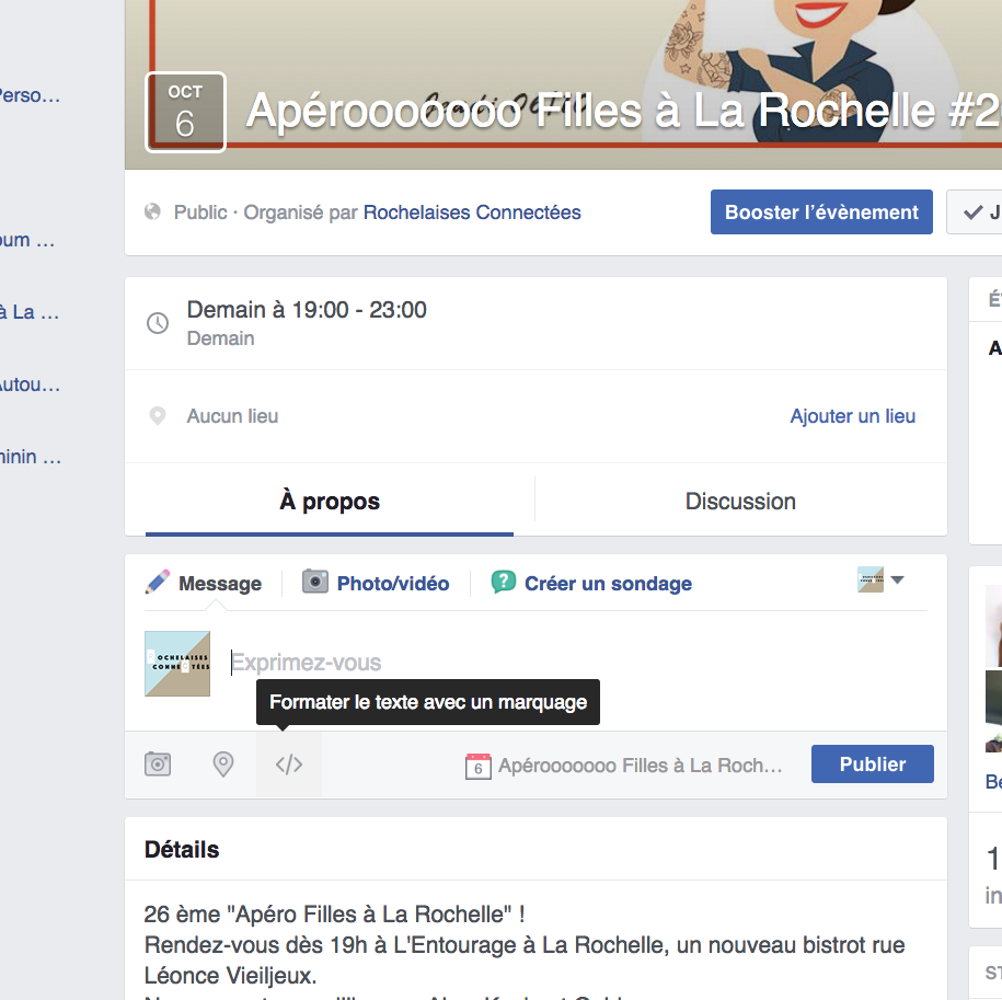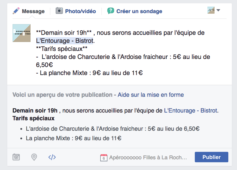 Comme on l’a vu la mise en forme des posts n’est possible pour l’instant que pour les événements.